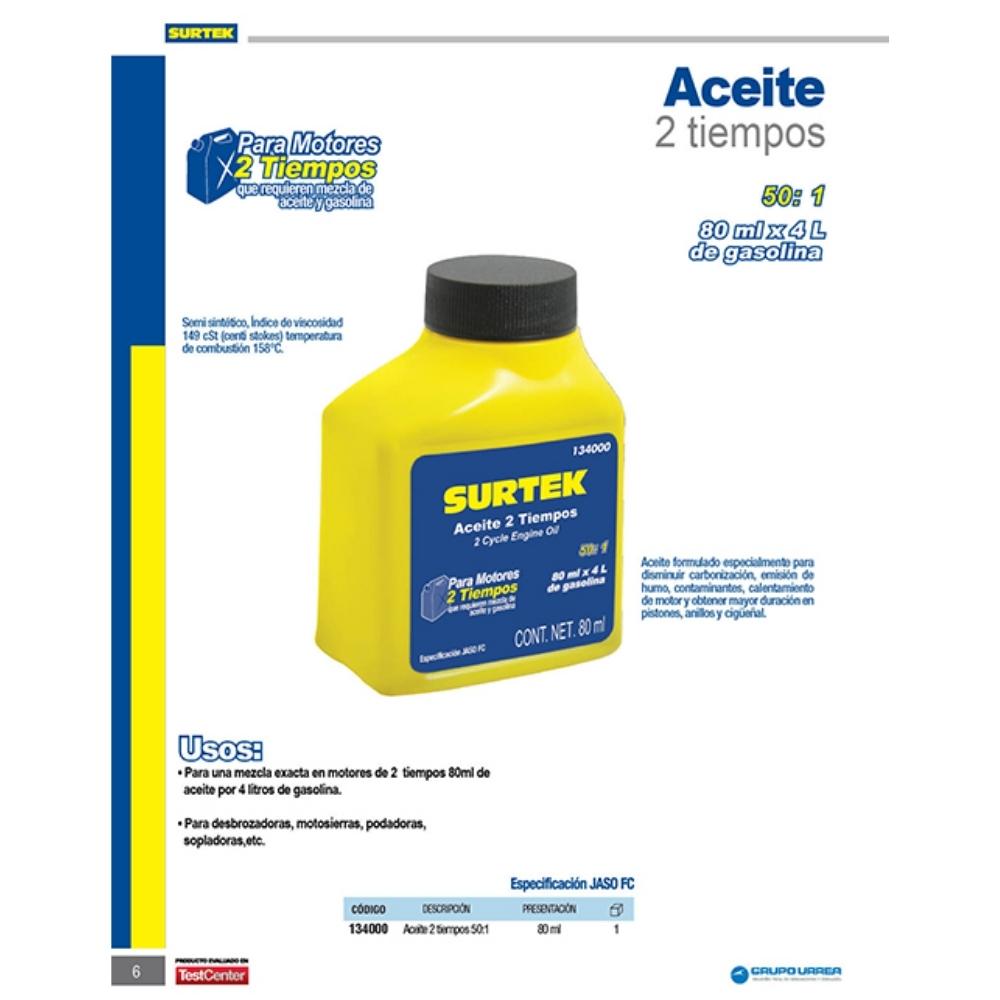 Aceite semi sintético dos tiempos 50:1, 80 ml Surtek