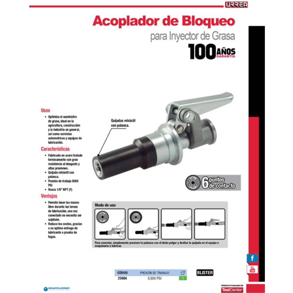 Sé el primero en valorar “Acoplador rápido para inyector de grasa 8,000 PSI Urrea”