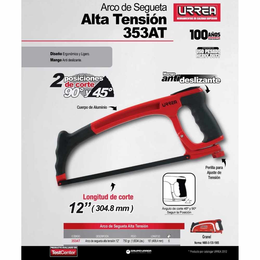 Arco de segueta de alta tensión ergonómico con mango bimaterial 12″, 16″ Urrea