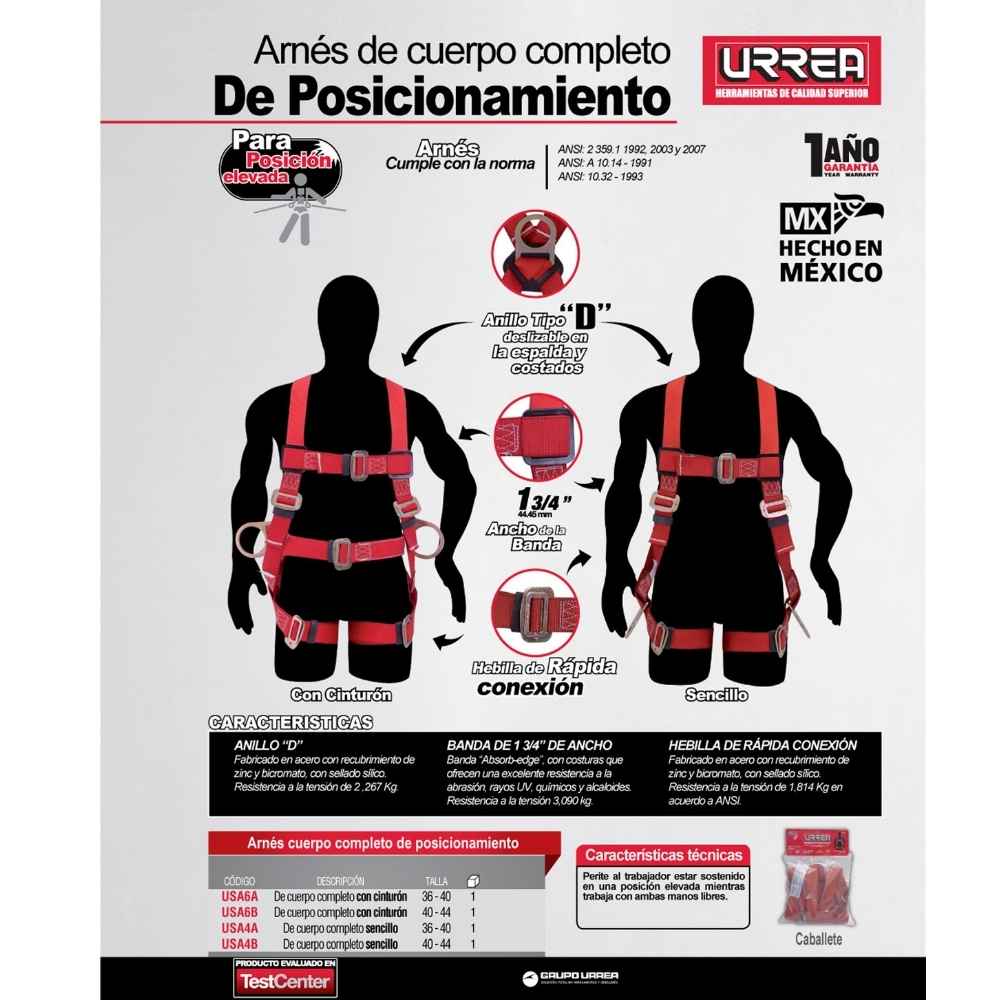 -Arnés de posicionamiento con cinturón talla 36-40 Urrea
