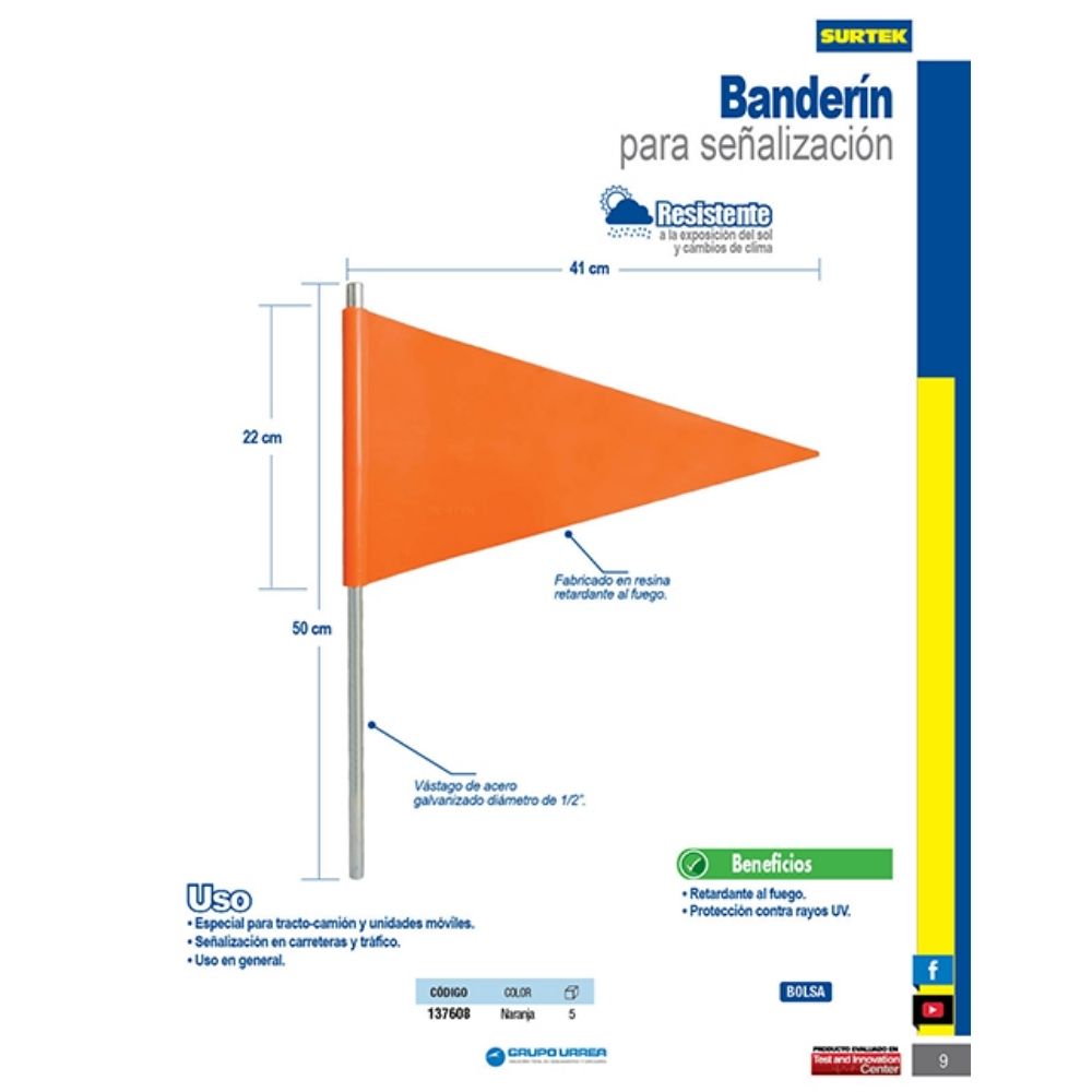 Sé el primero en valorar “Banderín para señalización con vástago de acero galvanizado Surtek”