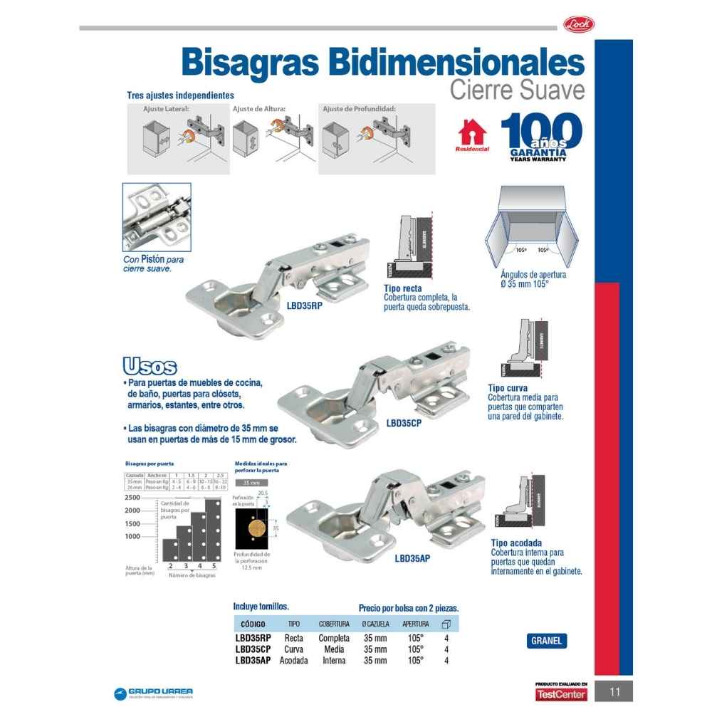 -Bisagra bidimensional acodada 35mm para cierre suave Lock.