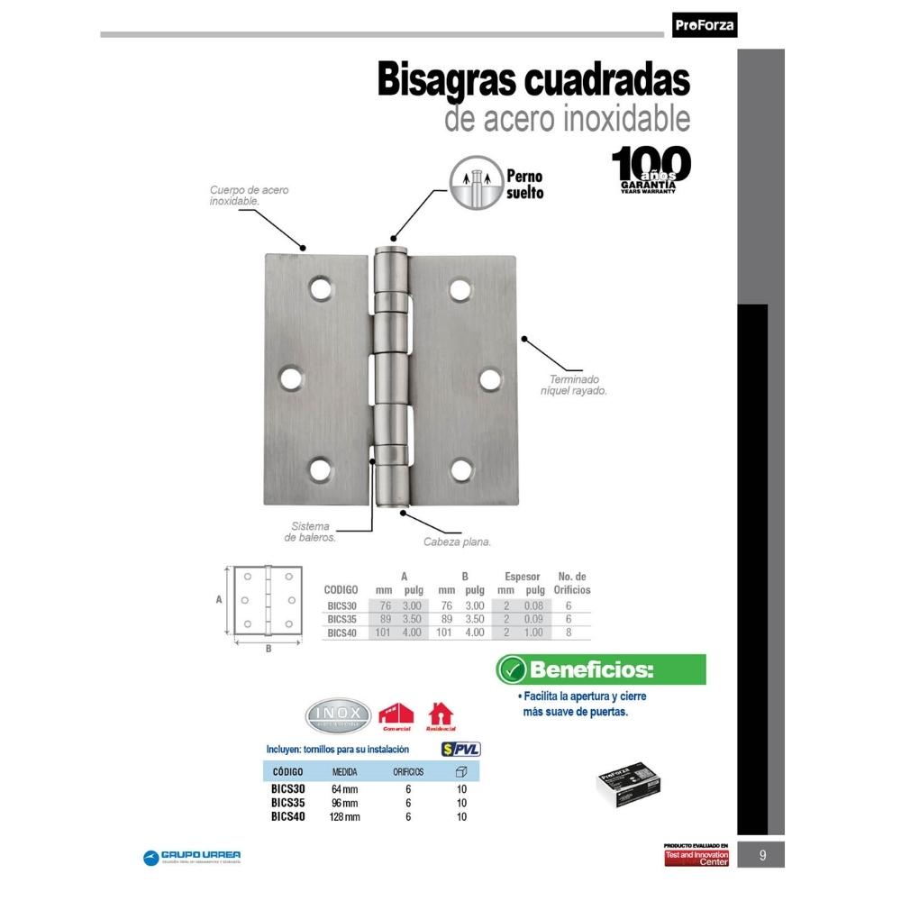 Bisagra cuadrada con baleros de acero inoxidable 4″ x 4″ Proforza