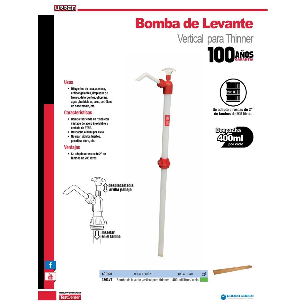 Bomba extractora vertical para thinner, suministro 400 ml por ciclo Urrea