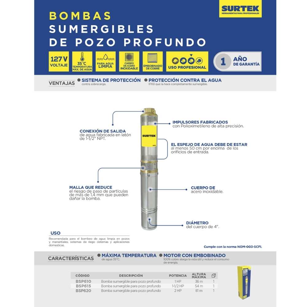Bomba sumergible para pozos profundos 1-1/2 HP 127 V Surtek