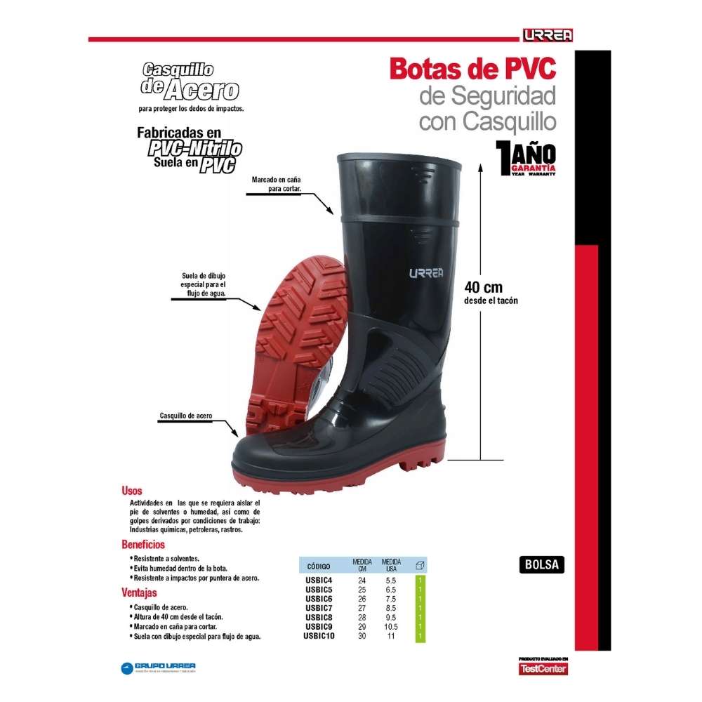 Botas de seguridad de PVC con casquillo de acero #27 cm Urrea