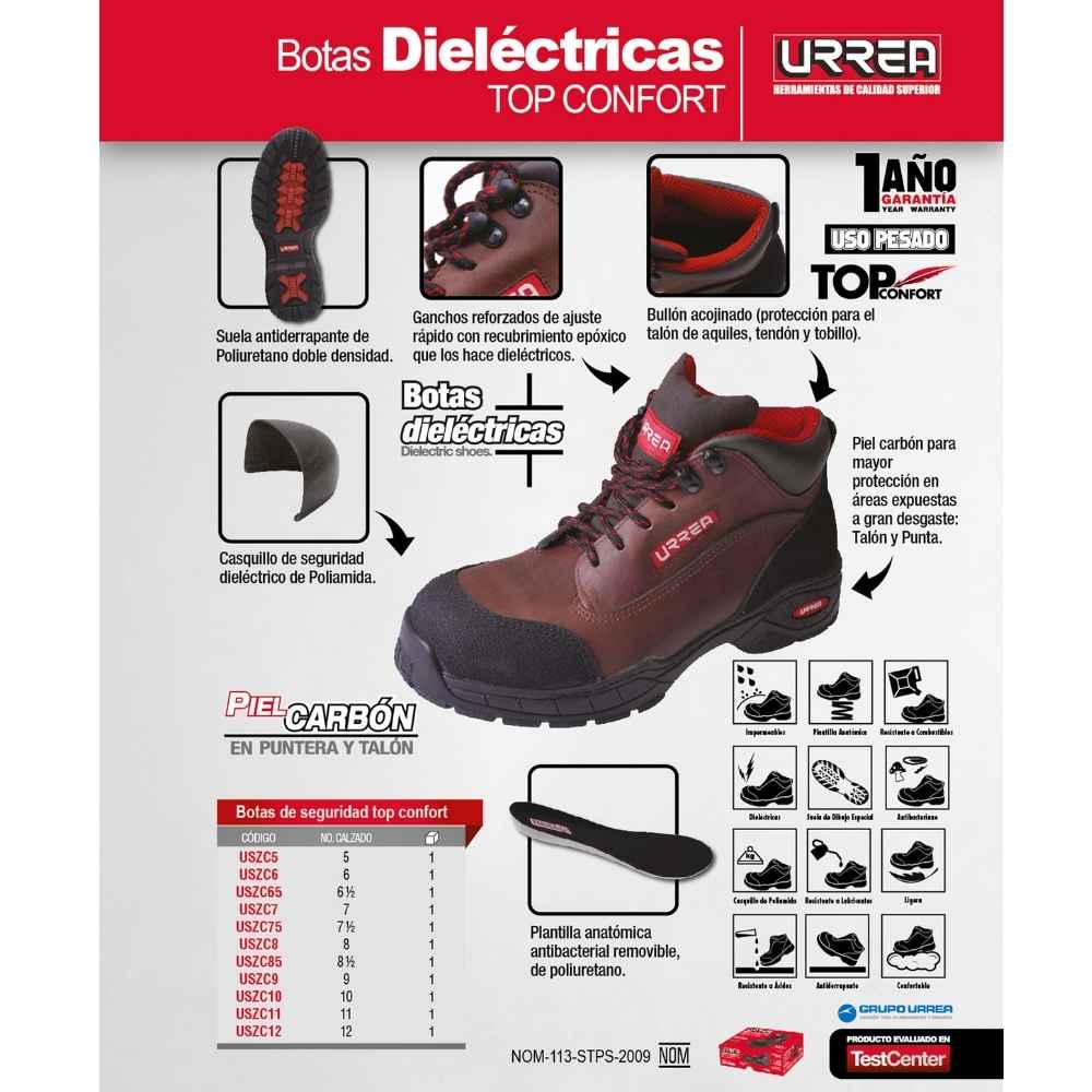 -Botas de seguridad dieléctrica Top confort # 6 1/2″ Urrea