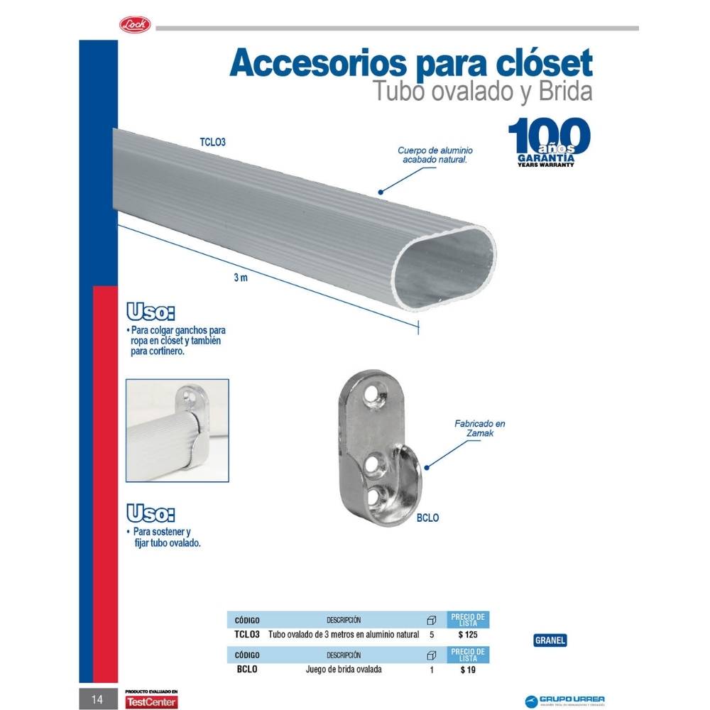 Brida para tubo ovalado para clóset Lock