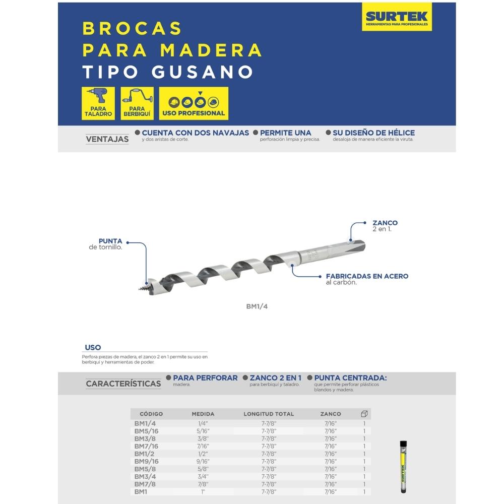 -Broca para madera tipo gusano 1/4″ Surtek
