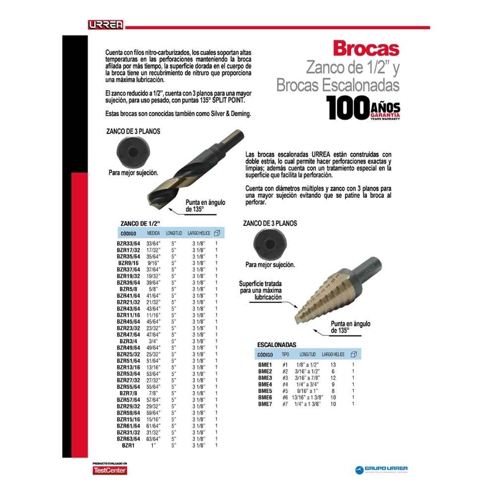 -Broca acero alta velocidad premium zanco reducido 5/8″ Urrea