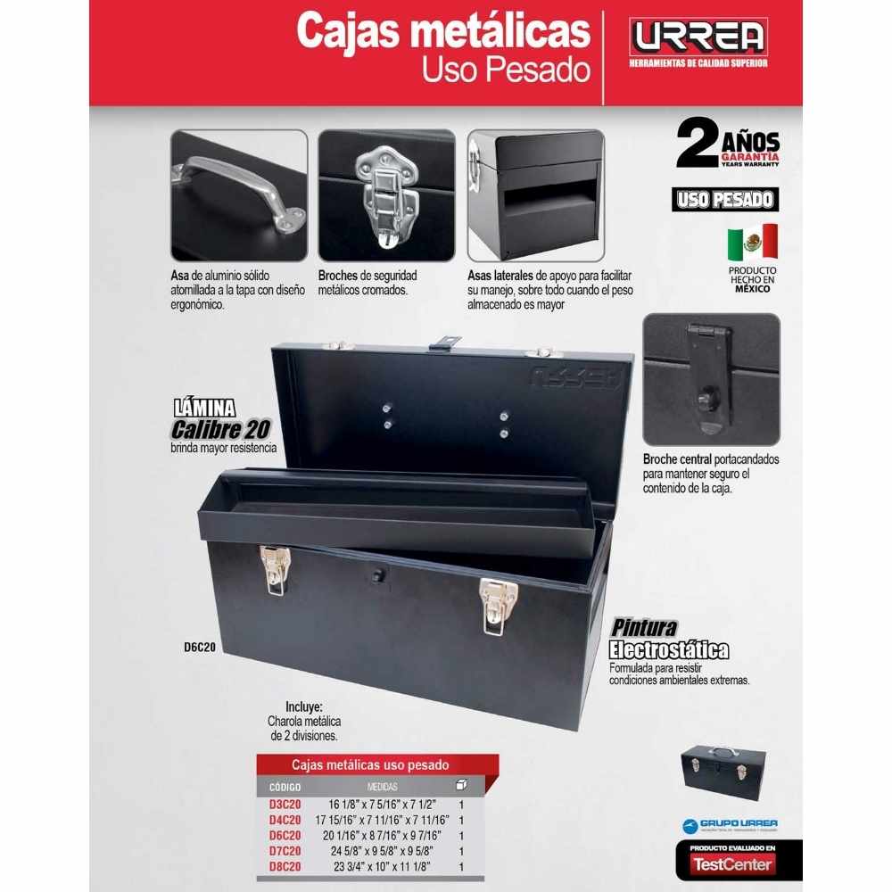 -Caja portaherramientas metálica uso pesado 41 x 18 x 19cm calibre 20 Urrea