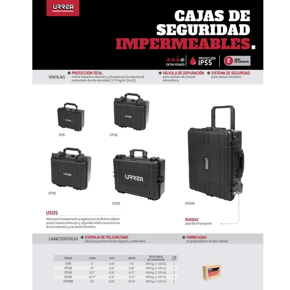 Caja portaherramientas plástica de seguridad impermeable 9″ x 7″ x 4″ Urrea