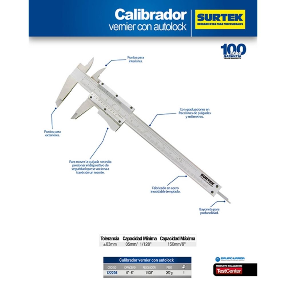 Calibrador en pulgadas y milímetros vernier autolock 0 – 6″ Surtek