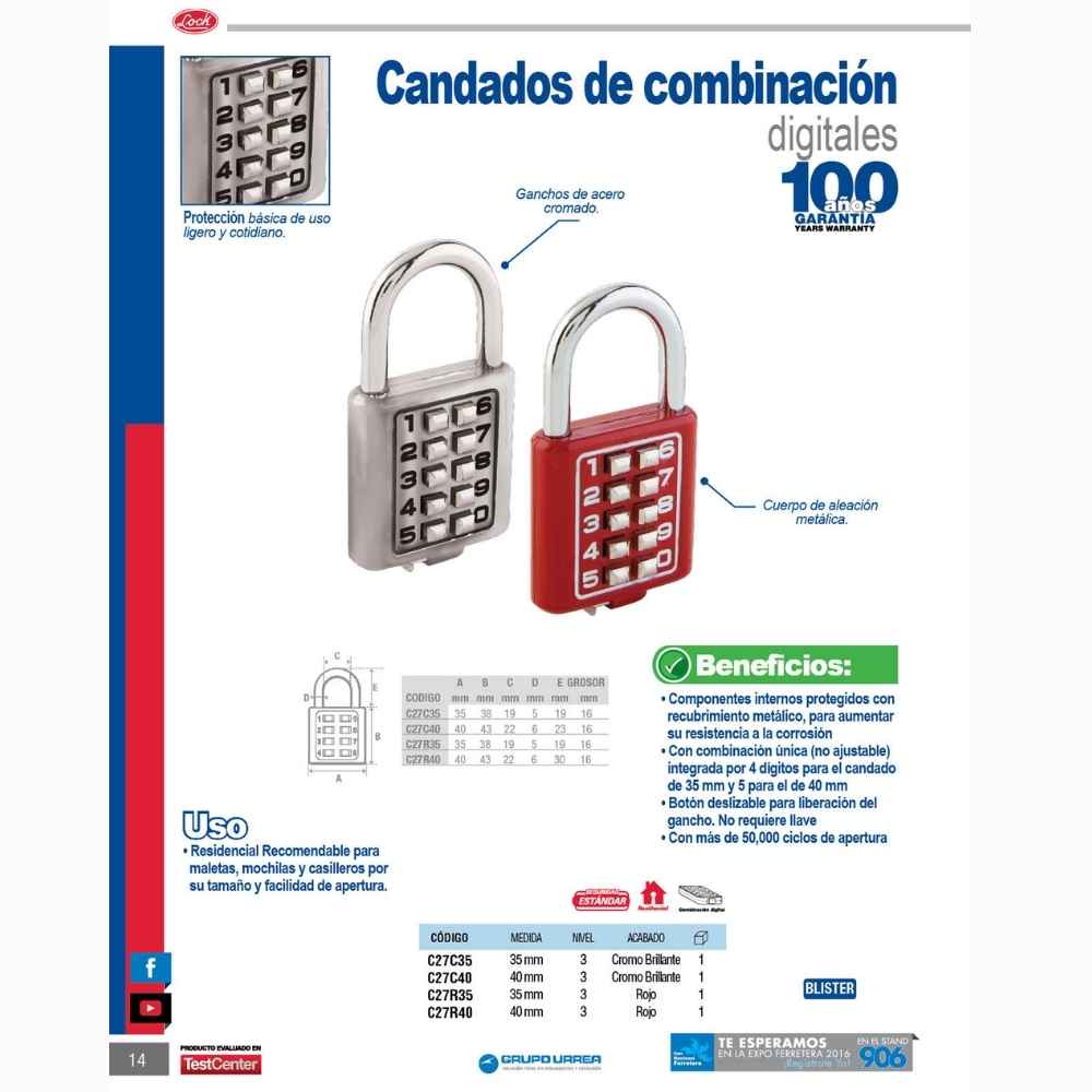 -Uso residencial. Recomendable para maletas, mochilas y casilleros por su tamaño y facilidad de apertura