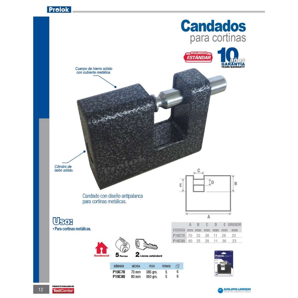 -Candado con diseño anti-palanca para cortinas metálicas