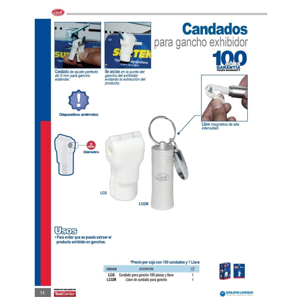 Candado para gancho con llave, 100 piezas Surtek
