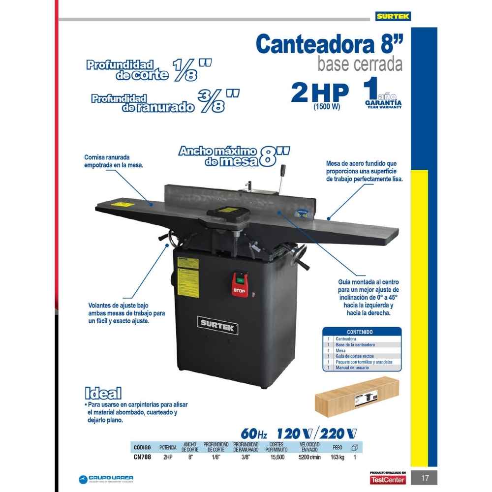 Canteadora 8″ 1500 W 220 V, 5200 RPM con guía montada con ajuste de inclinación hasta 45° Surtek