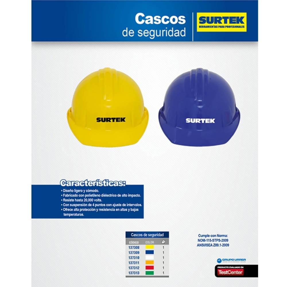 Casco de seguridad con ajuste de intervalos, color amarillo Surtek