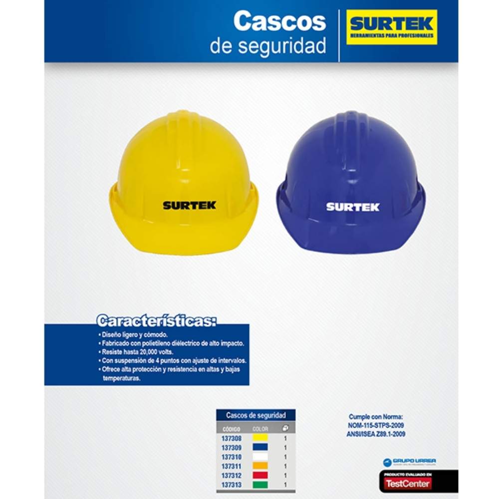 Casco de seguridad con ajuste de intervalos, color blanco Surtek