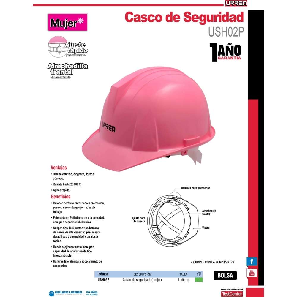Sé el primero en valorar “Casco de seguridad con ajuste de intervalos de 4 puntos, color rosa Urrea” Cancelar la respuesta