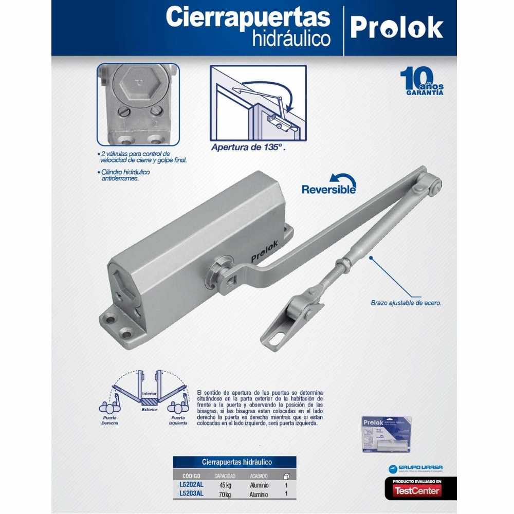 Cierrapuertas hidráulico con capacidad de 70 Kg, 135° Prolok