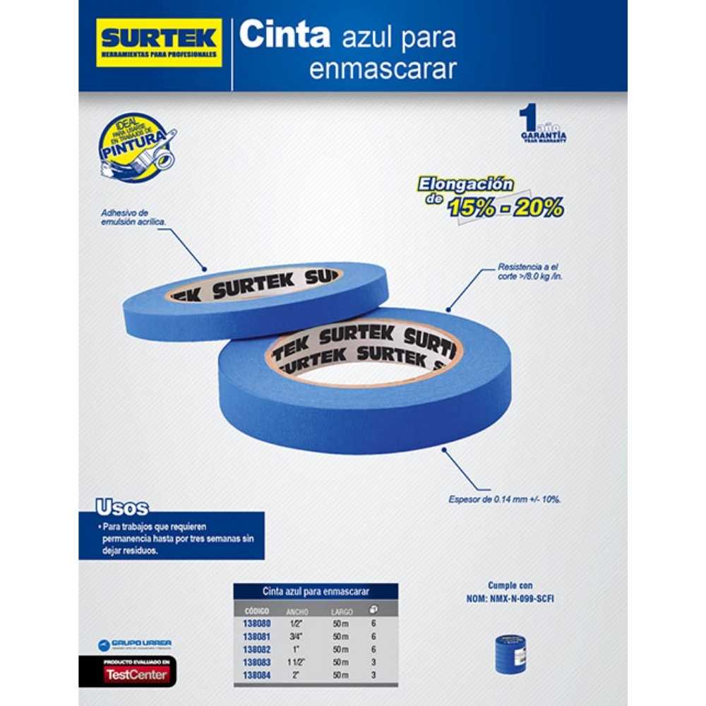 Cinta masking tape azul para enmascarar 13 mm x 50 m Surtek
