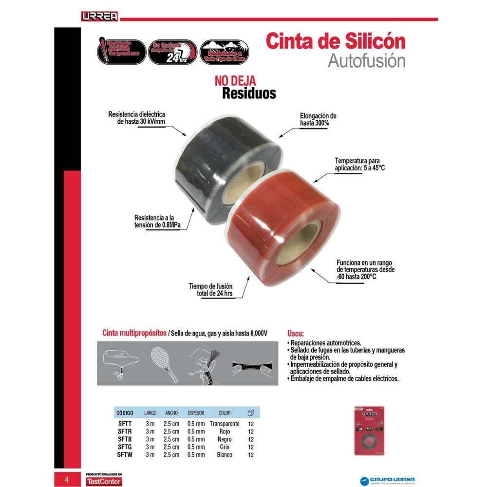 -Aísla hasta 8000V. Tiempo de auto fusión de 10 min. Tiempo de fusión total de 24hrs