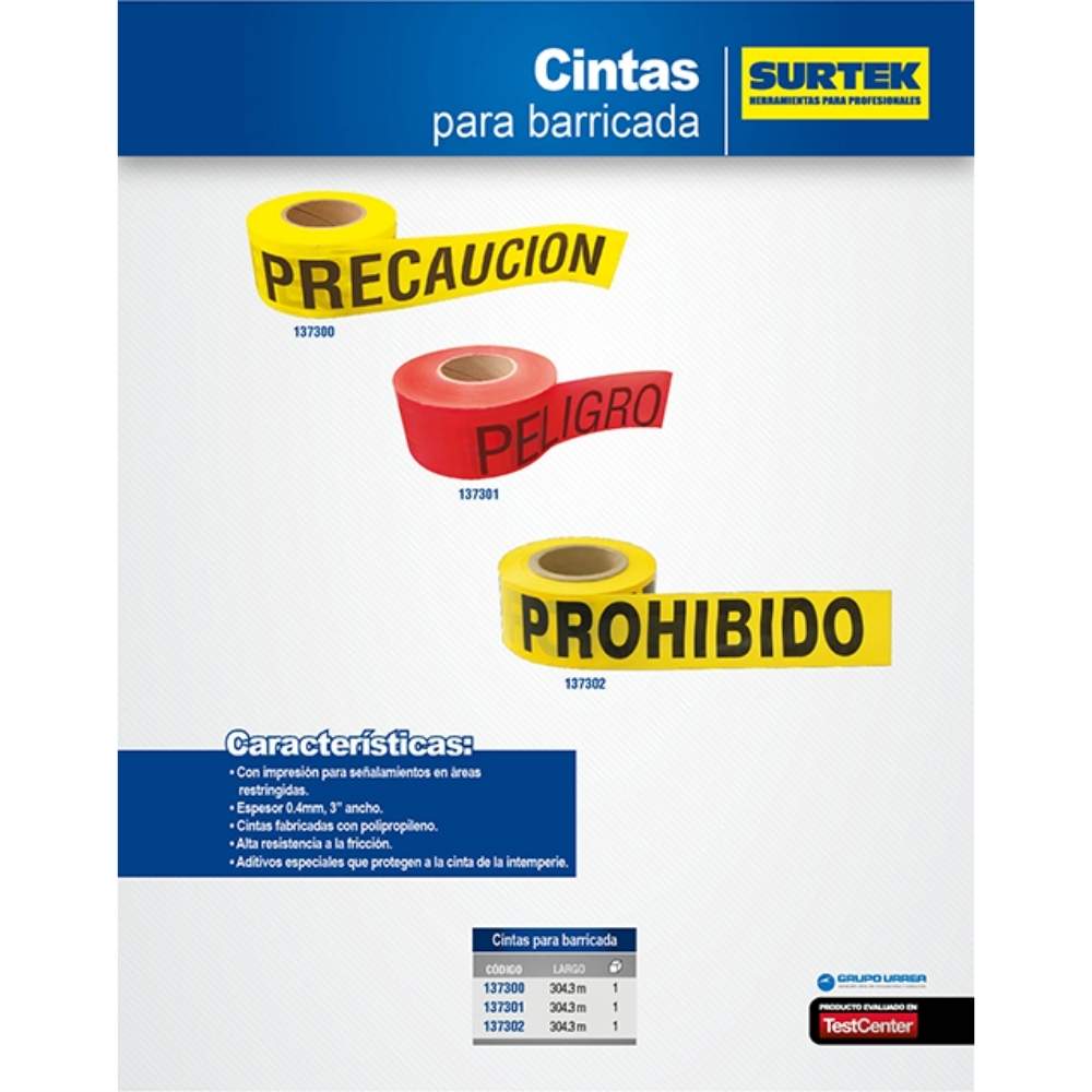 Cinta para barricada «PROHIBIDO EL PASO» ancho 3″ de 304 m Surtek