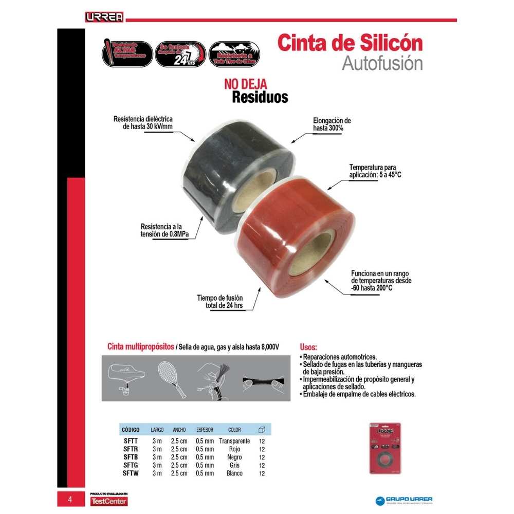 Cinta roja de silicón de autofusión 25 mm x 3 m, en blíster Urrea