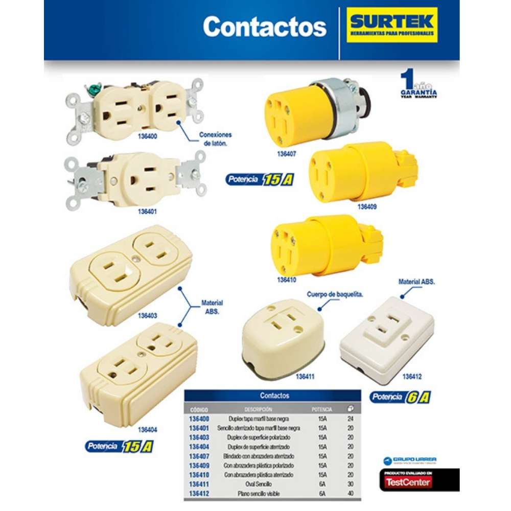 -Contacto dúplex tapa marfil base negra 15A 127V Surtek