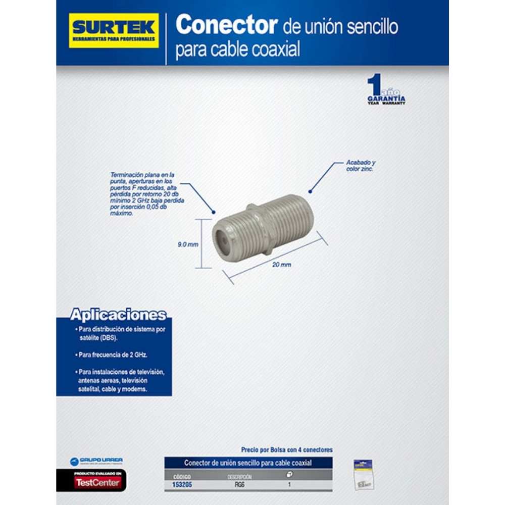 Cople para cable coaxial RG6 tipo barril, 4 piezas Surtek