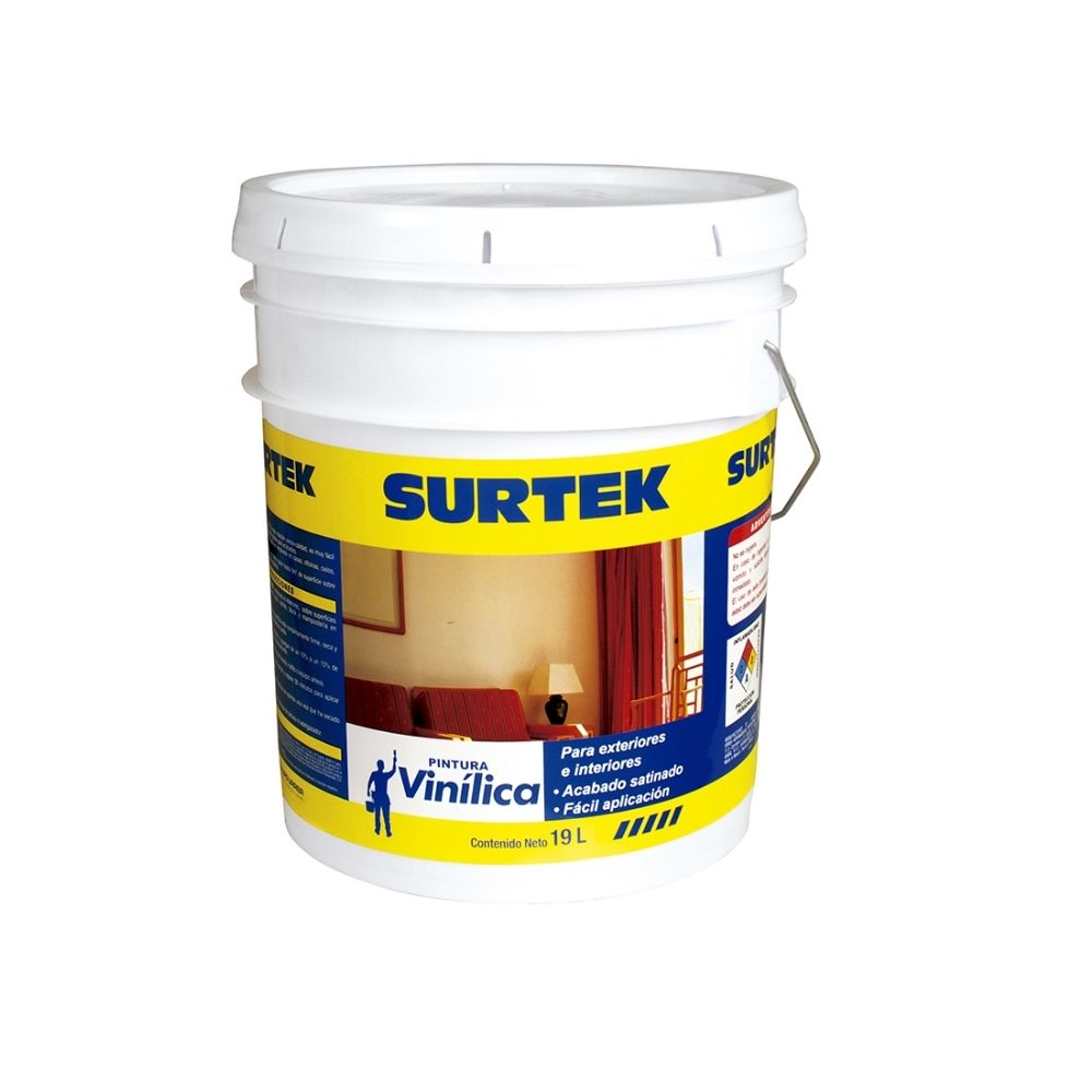 Cubeta de pintura vinílica 19 Lt color blanco Surtek