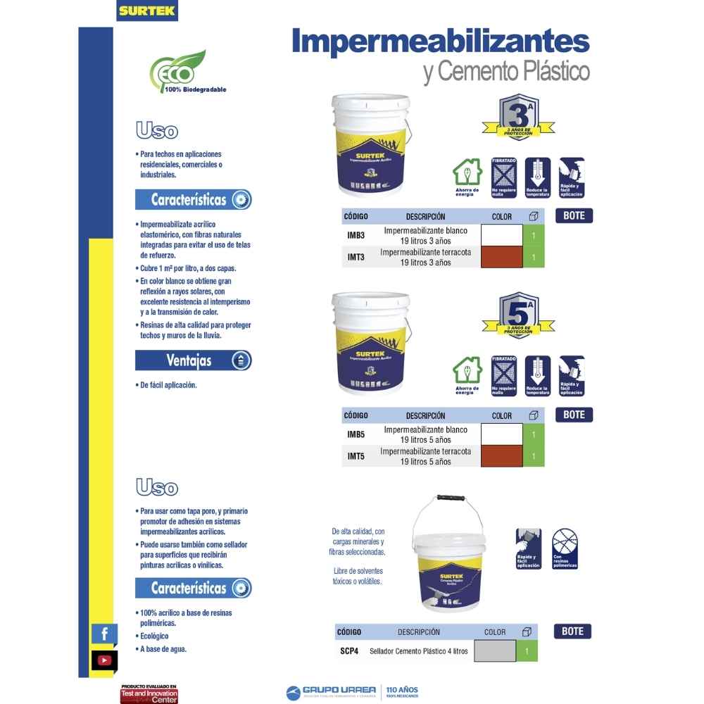 Cubeta de sellador de cemento plástico 4 Lt Surtek