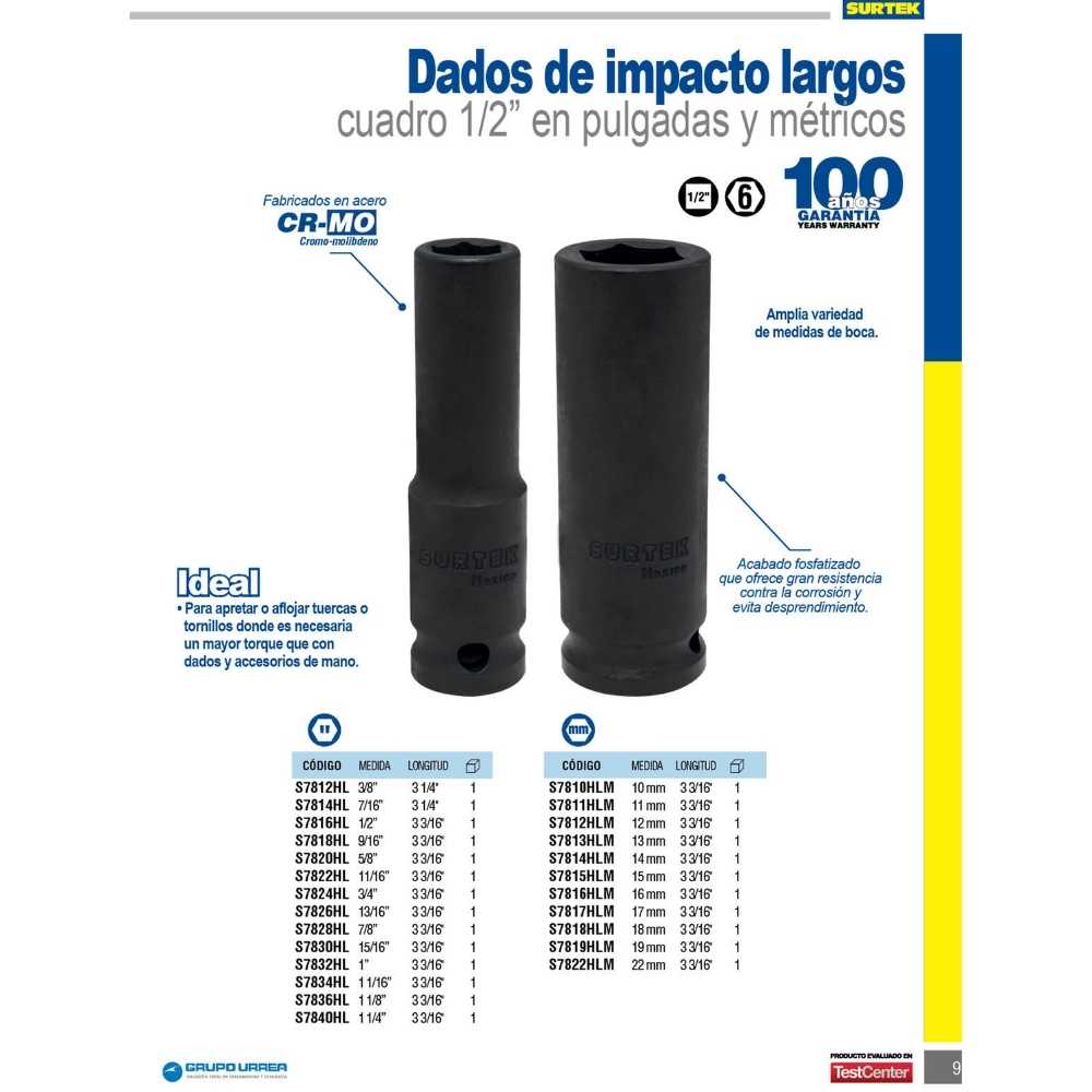 Dado de impacto largo cuadro de 1/2″, 6 puntas, en pulgadas, 3/4″ Surtek