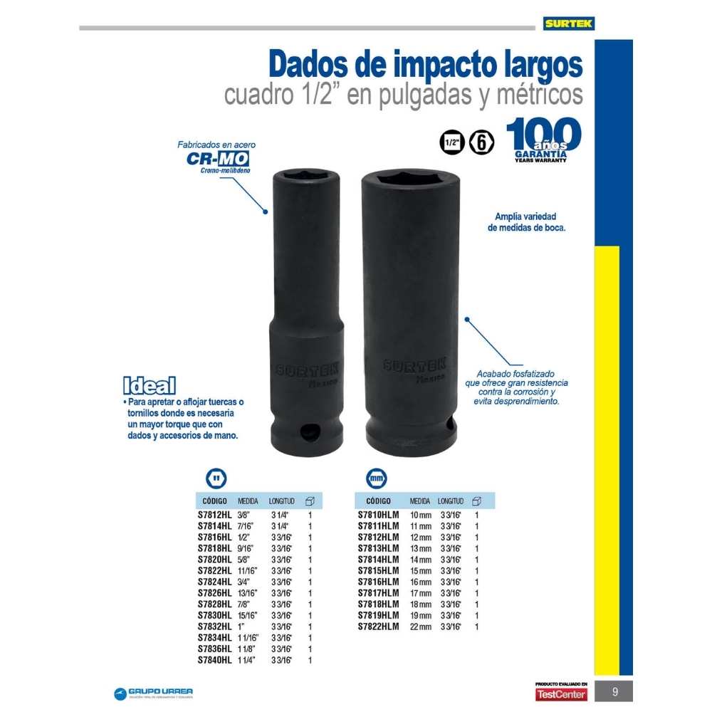 Sé el primero en valorar “Dado de impacto largo cuadro de 1/2″, 6 puntas, métrico, 17 mm Surtek” Cancelar la respuesta