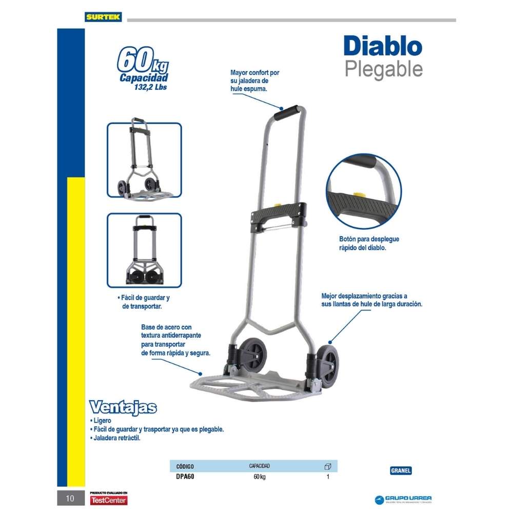 Diablo plegable capacidad 60 kg 26-3/4″ con rueda de hule Surtek