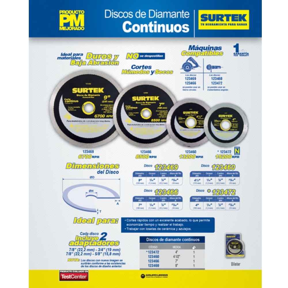 -Disco de diamante corte continuo 4″ Surtek