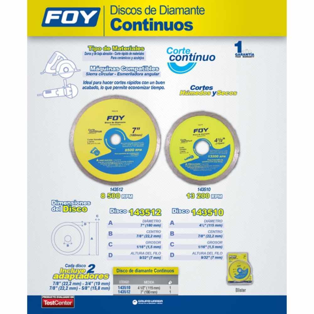 Sé el primero en valorar “Disco de diamante continuo, 7″ Foy” Cancelar la respuesta