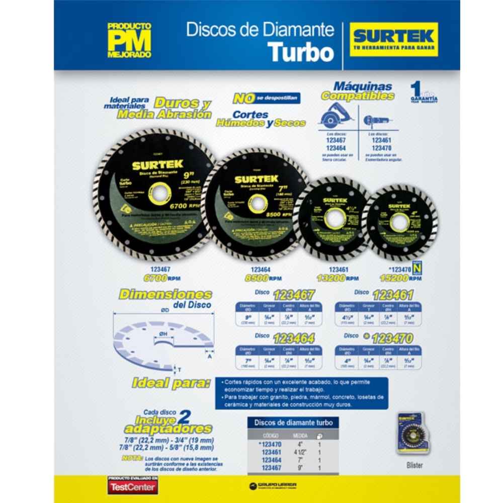 -Disco de diamante corte turbo 4 1/2″ Surtek