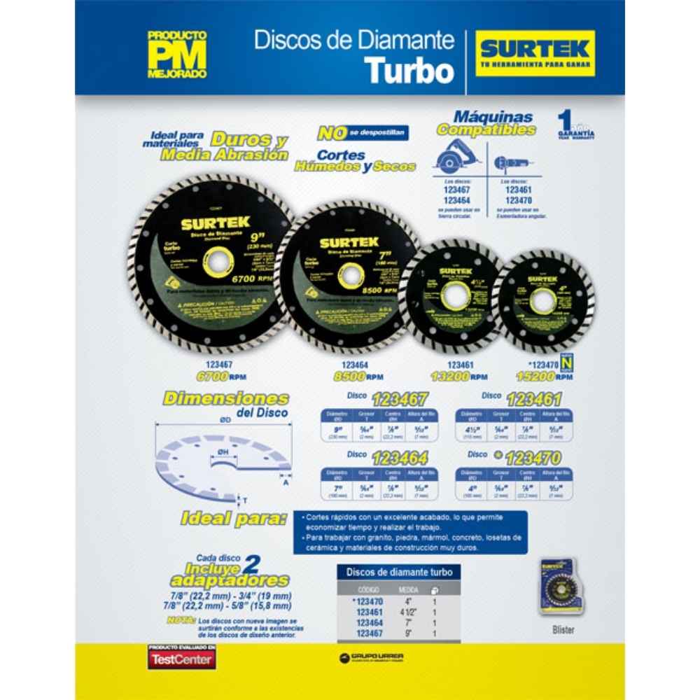 Disco de diamante turbo 9″ Surtek