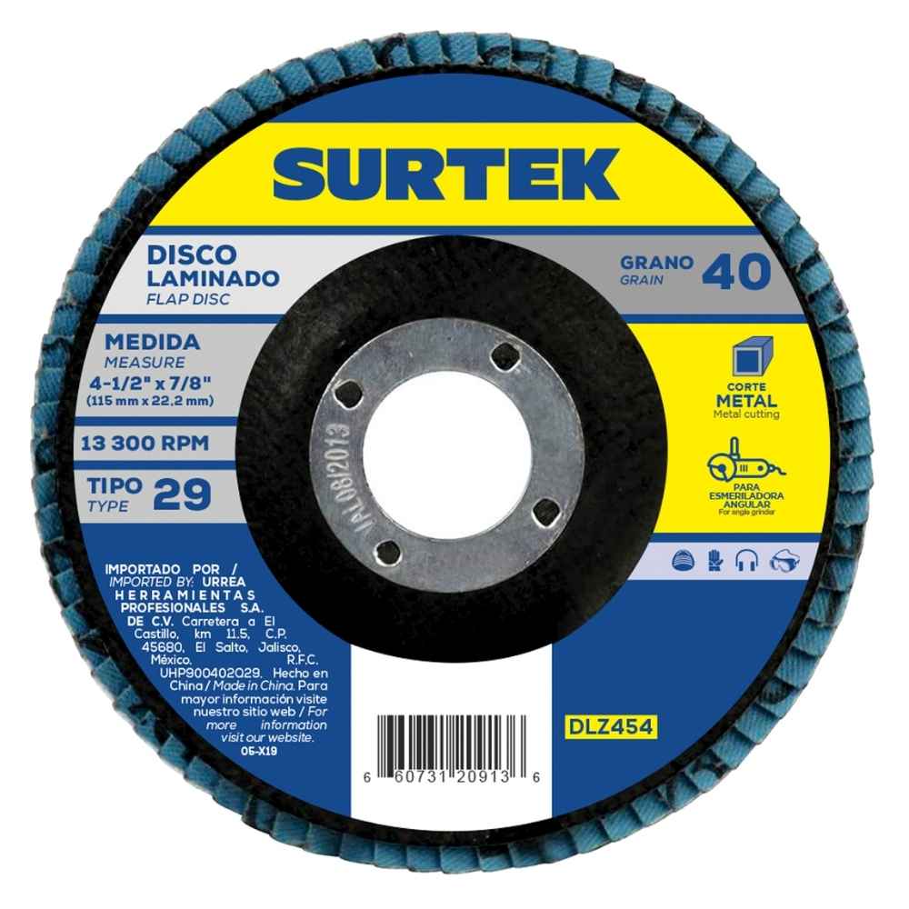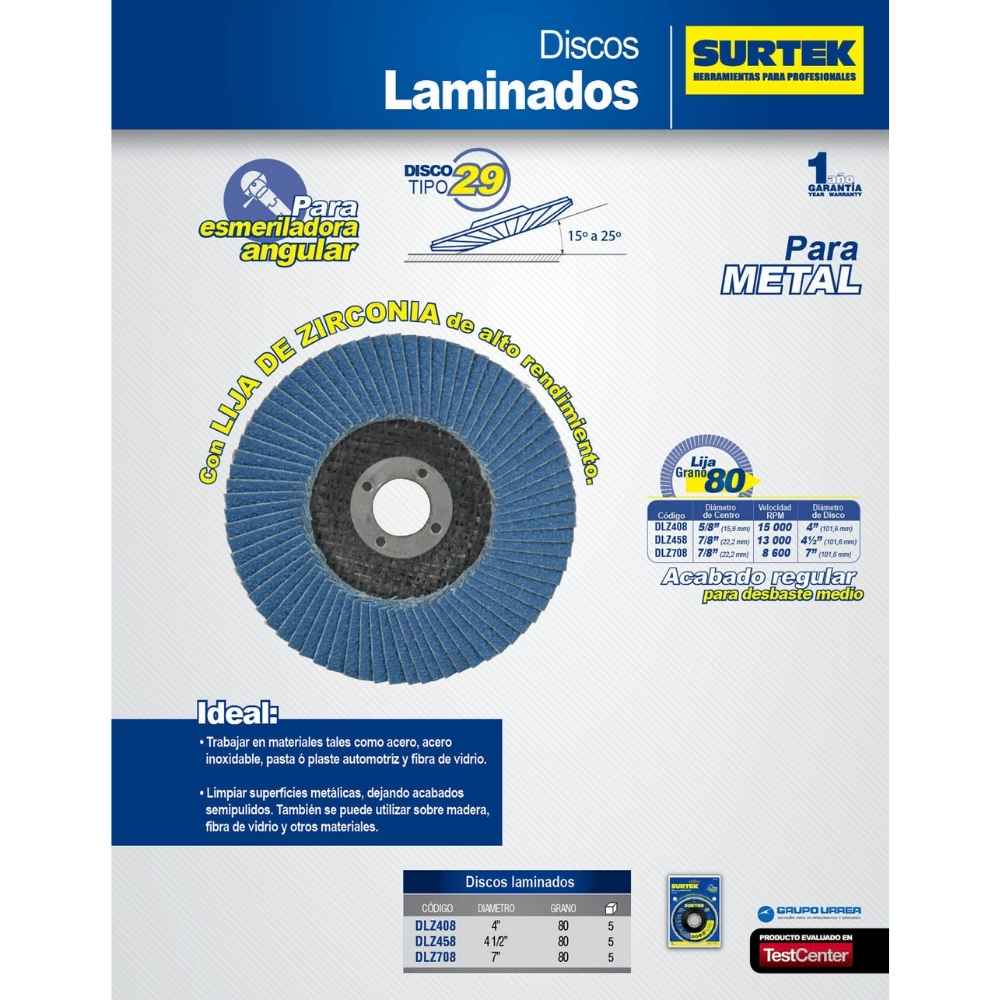 Disco laminado tipo 29 grano 80, 4-1/2″ Surtek