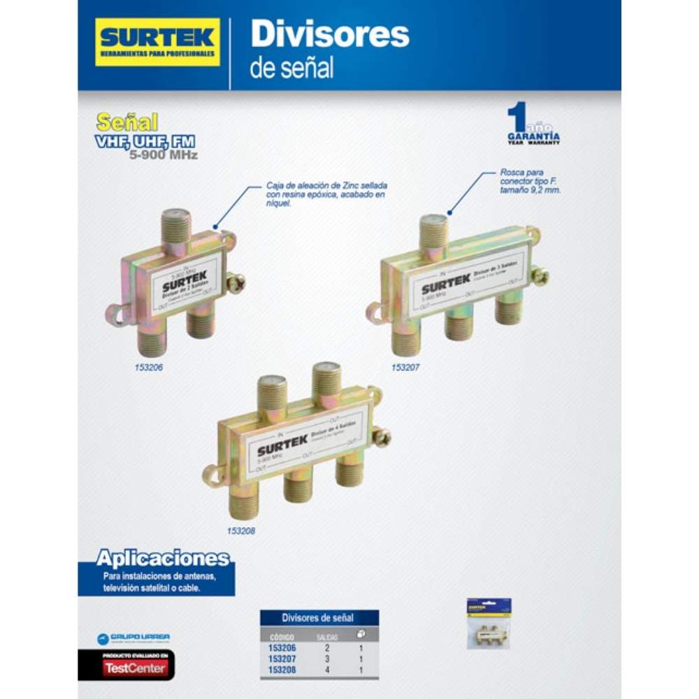 Divisor coaxial , 1 entrada 4 salidas Surtek