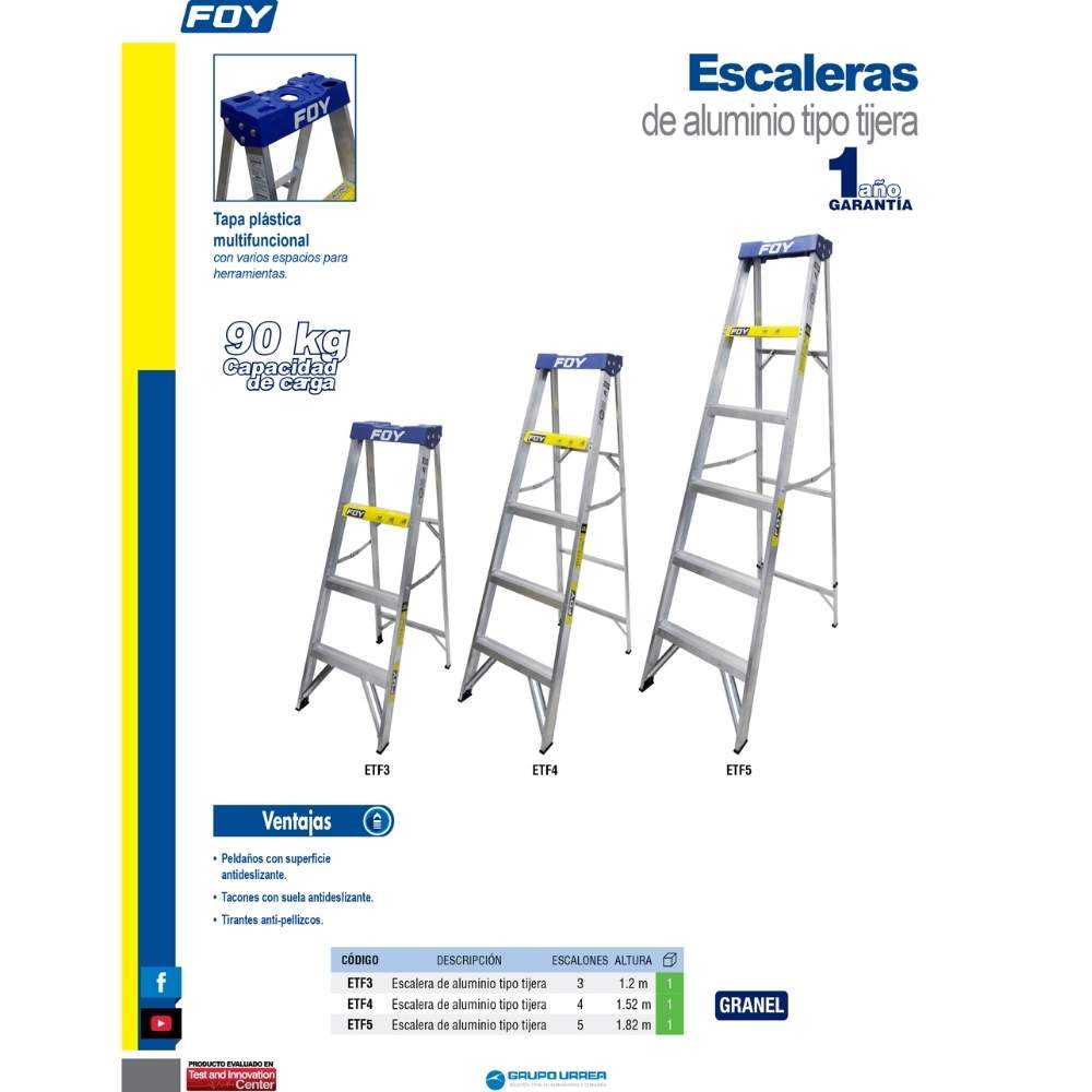 Escalera de tijera tipo III de aluminio y tapa plástica con 5 peldaños Foy