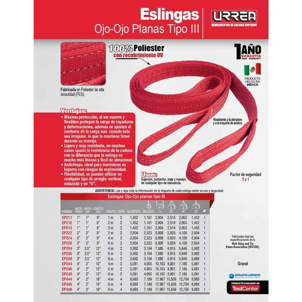 -Eslinga plana tipo III polipropileno 1″ x 1m 2 capas Urrea