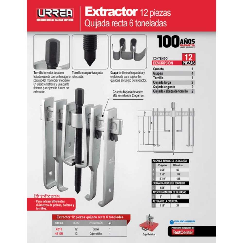 Extractor quijada recta tipo «A» 6 ton, 12 piezas Urrea