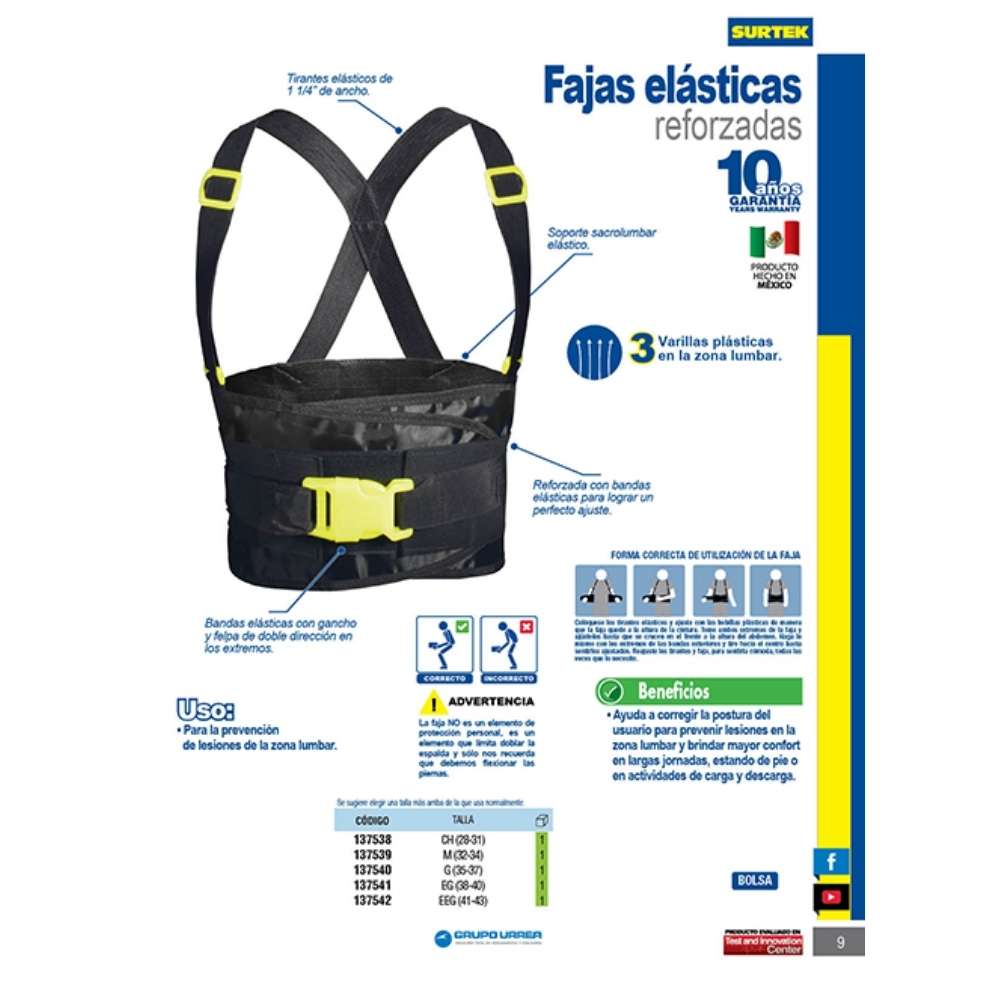 Faja elástica reforzada con hebilla de alta visibilidad CH Surtek