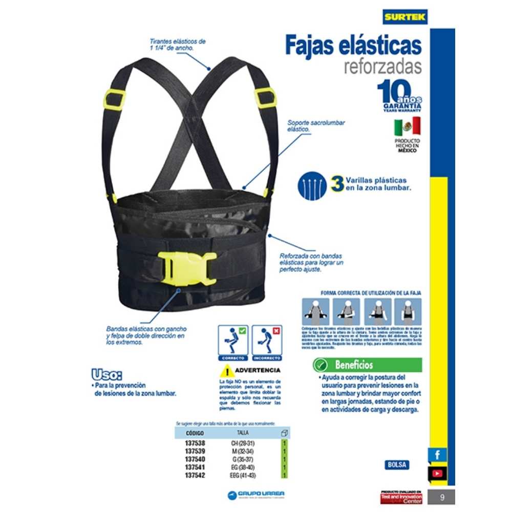 Faja elástica reforzadas con hebillas de alta visibilidad de 3 cinturones G Urrea