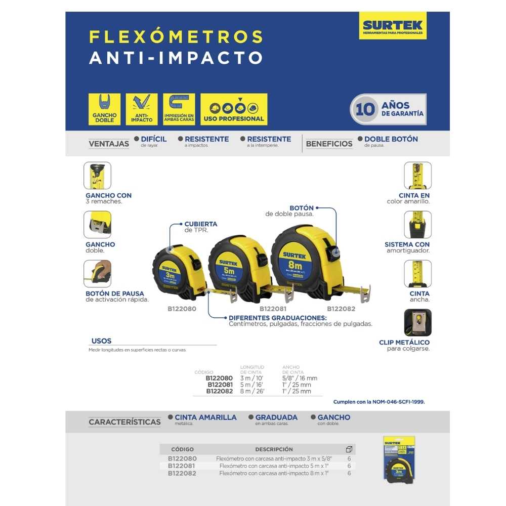 -Flexómetro anti-impacto 3m x 5/8″ Surtek