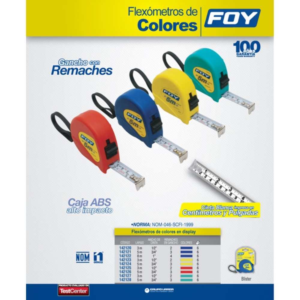 Flexómetro con carcasa de plástico rojo 3 m x 1/2″ Foy