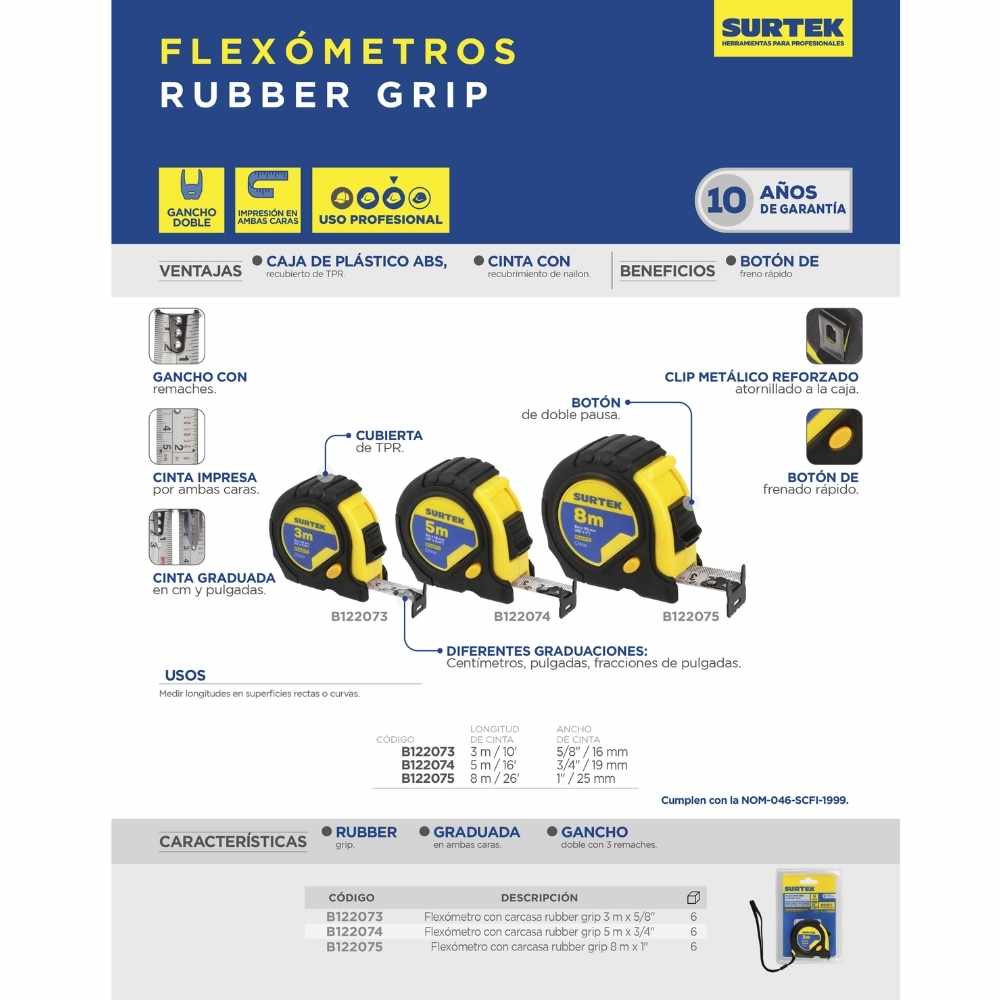 -Flexómetro rubber grip 3m x 5/8″ Surtek